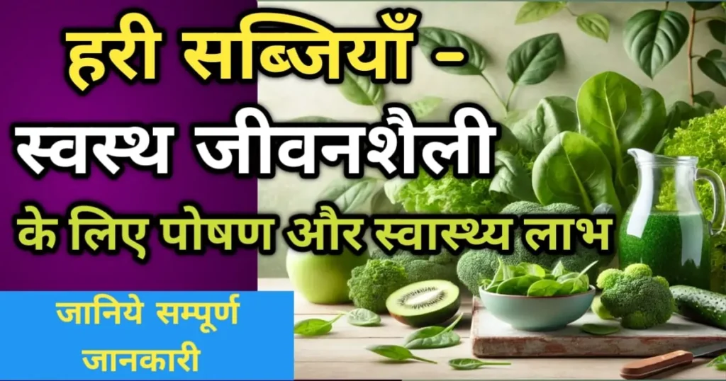 स्वस्थ जीवनशैली को बनाए रखने के लिए आहार में हरी सब्जियाँ एक अवश्यक तत्व हैं। हरी सब्जियाँ न केवल शरीर को जरूरी पोषण प्रदान करती हैं, बल्कि यह वजन घटाने, पाचन तंत्र की सेहत, हृदय स्वास्थ्य, और मधुमेह नियंत्रण में भी सहायक होती हैं। एंटीऑक्सीडेंट्स से भरपूर, हरी सब्जियाँ त्वचा और बालों के लिए भी फायदेमंद होती हैं। इसलिए, अपनी दैनिक डाइट में हरी सब्जियों को शामिल करना न केवल एक अच्छे स्वास्थ्य की ओर पहला कदम है, बल्कि यह एक स्वस्थ जीवनशैली की ओर अग्रसर करने में भी मदद करता है।